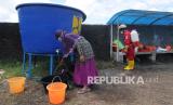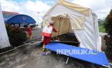 REPUBLIKA.CO.ID, BOYOLALI -- Petugas Palang Merah Indonesia (PMI) Kabupaten Boyolali menyemprotkan cairan pembasmi lalat di tempat pengungsian sementara Gunung Merapi, Klakah, Selo, Boyolali, Jawa Tengah, Selasa (1/12/2020).