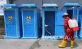 Petugas Palang Merah Indonesia (PMI) Kabupaten Boyolali menyemprotkan cairan pembasmi lalat di tempat pengungsian sementara Gunung Merapi, Klakah, Selo, Boyolali, Jawa Tengah, Selasa (1/12/2020). Pembasmian lalat di lokasi tersebut dilakukan untuk mengantisipasi penyebaran penyakit bagi pengungsi Merapi. (FOTO : Antara/Aloysius Jarot Nugroho)