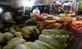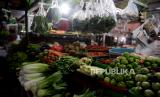 Pedagang menata dagangannya di Pasar Tebet Timur, Jakarta, Selasa (1/12). Badan Pusat Statistik (BPS) mencatat kenaikan harga sejumlah pangan telah memicu terjadinya inflasi pada November 2020 sebesar 0,28 persen.Prayogi/Republika. (FOTO : Prayogi/Republika)
