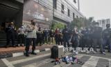 Kabid Humas Polda Metro Jaya Kombes Yusri Yunus memberikan keterangan kepada wartawan di Mapolda Metro Jaya, Jakarta, Selasa (1/12). Ditreskrimum Polda Metro Jaya akan memberikan surat panggilan kedua kepada Habib Rizieq Shihab dan menantunya Muhammad Hanif Alatas pada Kamis (3/12), apabila tidak menghadiri pemeriksaan terkait kasus kerumunan massa di Petamburan. Republika/Putra M. Akbar (FOTO : Republika/Putra M. Akbar)
