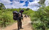 Sejumlah pasukan TNI yang tergabung dalam Satgas Tinombala berjalan disekitar perkampungan warga yang menjadi lokasi penyerangan yang diduga dilakukan kelompok teroris Mujahidin Indonesia Timur (MIT) pimpinan Ali Kalora, di Dusun Lewonu, Desa Lemban Tongoa, Kabupaten Sigi, Sulawesi Tengah, Selasa (1/12/2020). Serangan yang terjadi pada Jumat (27/11/2020) itu menewaskan empat warga dan hingga kini aparat TNI dan Polri yang tergabung dalam Satgas Tinombala terus berupaya melakukan pengejaran untuk menangkap para pelaku. (FOTO : ANTARA FOTO/Mohamad Hamzah)