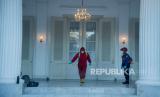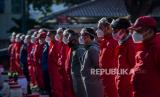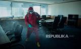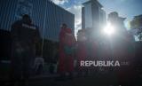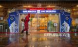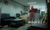 REPUBLIKA.CO.ID, JAKARTA -- Petugas Dinas Penanggulangan Kebakaran dan Penyelamatan Provinsi DKI Jakarta melakukan proses disinfeksi di lingkungan Gedung Balai Kota DKI Jakarta, Jakarta, Selasa (1/12).