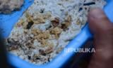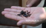 Petugas memperlihatkan siklus alami iduk magot yang mati setelah proses bertelur di tempat bididaya maggot yang merupakan bagian dari pengelolaan sampah Waste to Food, di Buruan Sae, Jalan Futsal III, RT 7, RW 13, Kelurahan Sukamiskin, Kecamatan Arcamanik, Kota Bandung, Rabu (3/12). Maggot adalah larva sejenis lalat yang berguna untuk mengurai sampah organik khususnya sampah dapur menjadi pupuk kompos. Diharapkan dengan mentode ini lingkungan tidak hanya sekedar bersih tapi bermanfaat dan menghasilkan. Maggot sendiri bisa dimanfaatkan untuk pakan ternak dan binatang peliharaan lainnya seperti ikan, ayam dan burung kicau. (FOTO : Edi Yusuf/Republika)