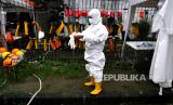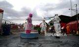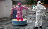 Petugas bersiap melakukan dekontaminasi petugas medis di Zona Dekontaminasi, Posko Dukungan Satgas Covid-19 DIY, Yogyakarta, Rabu (2/12). Permintaan dekontaminasi petugas medis naik dalam sepekan terakhir. Seiring meningkatnya angka positif Covid-19. (FOTO : Wihdan Hidayat / Republika)