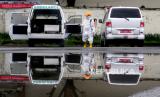 Petugas menyemprot cairan disinfektan kendaraan ambulan saat dekontaminasi di Zona Dekontaminasi, Posko Dukungan Satgas Covid-19 DIY, Yogyakarta, Rabu (2/12). Permintaan dekontaminasi petugas medis naik dalam sepekan terakhir. Seiring meningkatnya angka positif Covid-19. (FOTO : Wihdan Hidayat / Republika)