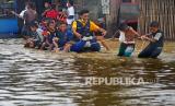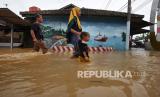 REPUBLIKA.CO.ID, CILEGON -- Nanjir merendam pemukiman warga Ciwandan, Cilegon, Banten, Kamis (3/12). Banjir terjadi akibat hujan deras yang mengakibatkan Sungai Ciwandan meluap hingga menggenangi jalan raya Cilegon-Anyer setinggi 50 cm hingga 1 meter.
