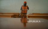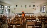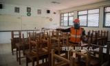 REPUBLIKA.CO.ID, Petugas PPSU Kelurahan Palmerah menyemprotkan cairan disinfektan di lingkungan Madrasah Aliyah Negeri 22 Jakarta, Palmerah, Jakarta, Jumat (4/12).