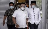 Kepala Staf Kepresidenan Moeldoko (tengah) didampingi Gubernur Jawa Barat Ridwan Kamil (kanan) berjalan keluar ruangan saat kunjungan kerja di Gedung Pakuan, Jalan Cicendo, Kota Bandung, Jumat (4/12). Dalam kunjungan kerjanya di Kota Bandung, Kepala Staf Kepresidenan Moeldoko mendengar sekaligus membahas penanganan pandemi Covid-19 khususnya di Jawa Barat dengan sejumlah tokoh. (FOTO : ABDAN SYAKURA/REPUBLIKA)