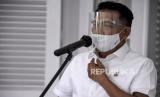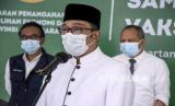 Gubernur Jawa Barat Ridwan Kamil memberikan keterangan kepada wartawan saat kunjungan kerja Kepala Staf Kepresidenan di Gedung Pakuan, Jalan Cicendo, Kota Bandung, Jumat (4/12). Dalam kunjungan kerjanya di Kota Bandung, Kepala Staf Kepresidenan Moeldoko mendengar sekaligus membahas penanganan pandemi Covid-19 khususnya di Jawa Barat dengan sejumlah tokoh. (FOTO : ABDAN SYAKURA/REPUBLIKA)