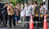 REPUBLIKA.CO.ID, JAKARTA -- Petugas KPK membawa sejumlah orang yang diamankan dalam operasi tangkap tangan (OTT) Bupati Banggai Laut Wenny Bukamo ke dalam gedung KPK, Jakarta, Jumat (4/12/2020).