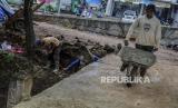 REPUBLIKA.CO.ID, JAKARTA -- Pekerja menyelesaikan perbaikan dinding turap di kawasan Lenteng Agung, Jakarta, Ahad (6/12). Perbaikan turap sepanjang 400 meter di ruas aliran Kali Baru tersebut sebagai bentuk perawatan untuk menggantikan dinding turap lama yang sudah rapuh dan rawan longsor.