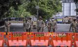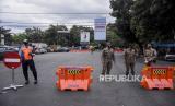 Petugas gabungan melakukan patroli saat penutupan ruas jalan di Jalan Dipatiukur, Kota Bandung, Ahad (6/12). Dalam pelaksanaan Pembatasan Sosial Berskala Besar (PSBB) Proporsional, Pemerintah Kota Bandung menutup jalan kawasan Dipatiukur selama 14 hari ke depan sebagai upaya mencegah potensi kerumunan warga dan wisatawan guna meminimalisir penyebaran Covid-19 di Kota Bandung. (FOTO : ABDAN SYAKURA/REPUBLIKA)