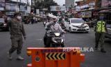 Petugas Satpol PP mengarahkan pengendara untuk memutar balik saat penutupan ruas jalan di Jalan Dipatiukur, Kota Bandung, Ahad (6/12). Dalam pelaksanaan Pembatasan Sosial Berskala Besar (PSBB) Proporsional, Pemerintah Kota Bandung menutup jalan kawasan Dipatiukur selama 14 hari ke depan sebagai upaya mencegah potensi kerumunan warga dan wisatawan guna meminimalisir penyebaran Covid-19 di Kota Bandung. (FOTO : ABDAN SYAKURA/REPUBLIKA)