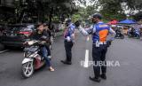 Petugas gabungan mengarahkan pengendara untuk memutar balik saat penutupan ruas jalan di Jalan Dipatiukur, Kota Bandung, Ahad (6/12). Dalam pelaksanaan Pembatasan Sosial Berskala Besar (PSBB) Proporsional, Pemerintah Kota Bandung menutup jalan kawasan Dipatiukur selama 14 hari ke depan sebagai upaya mencegah potensi kerumunan warga dan wisatawan guna meminimalisir penyebaran Covid-19 di Kota Bandung. (FOTO : ABDAN SYAKURA/REPUBLIKA)