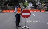 Petugas Dishub Kota Bandung mengatur arus lalu lintas saat penutupan ruas jalan di Jalan Dipatiukur, Kota Bandung, Ahad (6/12). Dalam pelaksanaan Pembatasan Sosial Berskala Besar (PSBB) Proporsional, Pemerintah Kota Bandung menutup jalan kawasan Dipatiukur selama 14 hari ke depan sebagai upaya mencegah potensi kerumunan warga dan wisatawan guna meminimalisir penyebaran Covid-19 di Kota Bandung. (FOTO : ABDAN SYAKURA/REPUBLIKA)