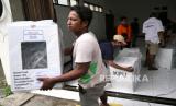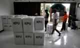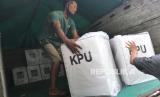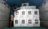 REPUBLIKA.CO.ID, BANTUL -- Pekerja mengangkut logistik ke atas truk untuk pendistribusian logistik Pilkada Kabupaten Bantul di Gudang KPUD Bantul, Yogyakarta, Senin (7/12). Logistik Pilkada yang didistribusikan salah satunya kotak suara, surat suara, bilik pemilihan, alat pencoblosan, dan semua jenis formulir. Proses distribusi untuk 2.085 TPS di 17 Kecamatan dilakukan dua hari Ahad dan Senin.