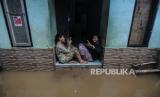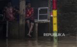 Warga beraktivitas saat terjadi banjir di kawasan Kebon Pala, Jakarta, Senin (7/12). BPBD DKI Jakarta mencatat sebanyak 34 RT di wilayah Jakarta Timur dan Jakarta Selatan terendam banjir karena tingginya curah hujan sejak Ahad (6/12) malam dan luapan kali Ciliwung dengan ketinggian berkisar 10-80 sentimeter. (FOTO : Republika/Putra M. Akbar)