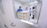 Foto selebaran yang disediakan oleh Istana Kepresidenan Indonesia menunjukkan petugas menyemprotkan disinfektan pada vaksin COVID-19 dari China Sinovac Biotech Ltd, di perusahaan farmasi milik negara PT Bio Farma di Bandung, Jawa Barat, Indonesia, 06 Desember 2020. Negara telah menerima 1,2 juta dosis vaksin, yang dipesan dari Sinovac Biotech Ltd. (FOTO : EPA-EFE/MUCHLIS JR)