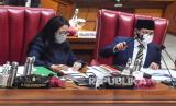 Ketua DPR Puan Maharani (kiri) bersama Muhaimin Iskandar (kanan) memimpin Rapat Paripurna DPR RI Ke-9 Masa Persidangan II Tahun Sidang 2020 – 2021 di Kompleks Parlemen Senayan, Jakarta, Senin (7/12/2020). Rapat Paripurna tersebut mengesahkan hasil uji kelayakan (fit and proper test) Calon Anggota Komisi Yudisial, Calon Anggota Dewan Energi Nasional (DEN) dari Pemangku Kepentingan Periode 2020-2025 dan Calon Anggota Pengurus Lembaga Pengembangan Jasa Konstruksi (LPJK) Periode 2021-2024. (FOTO : Antara/Muhammad Adimaja)