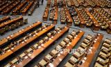 REPUBLIKA.CO.ID, JAKARTA -- Suasana Rapat Paripurna DPR RI Ke-9 Masa Persidangan II Tahun Sidang 2020- 2021 tampak lengang di Kompleks Parlemen Senayan, Jakarta, Senin (7/12).