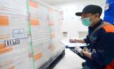 REPUBLIKA.CO.ID, BANDUNG -- Petugas memindahkan vaksin COVID-19 setibanya di Kantor Pusat Bio Farma, Bandung, Jawa Barat, Senin (7/12/2020).