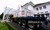 Foto yang dirilis oleh Istana Kepresidenan Indonesia menunjukkan wadah berisi vaksin COVID-19, dari China Sinovac Biotech Ltd, tiba di perusahaan farmasi milik negara PT Bio Farma di Bandung, Jawa Barat, Senin (7/12/2020). (FOTO : EPA-EFE/MUCHLIS JR)