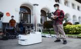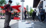 Sejumlah alat penanggulangan Covid-19 karya anak bangsa salah satunya Autonomous UVC Mobile Robot (AUMR) untuk sterilisasi dan desinfeksi inovasi dan desinfeksi ruang Isolasi dihadirkan saat Kunjungan Kerja Menristek/BRIN ke Jawa Barat dalam rangka bakti inovasi untuk penanggulangan Covid-19, di Gedung Sate, Kota Bandung, Senin (8/12). Karya inovasi anak bangsa tersebut diharapkan dapat membantu penanganan Covid-19 di Indonesia, (FOTO : Edi Yusuf/Republika)