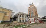 REPUBLIKA.CO.ID, INDRAMAYU -- Kondisi menara Masjid Syech Abdul Manan Islamic Center yang roboh di Indramayu, Jawa Barat, Rabu (9/12). Menara dari masjid yang diresmikan tahun 2018 itu roboh akibat terpaan angin kencang beberapa hari lalu.