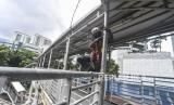 REPUBLIKA.CO.ID, JAKARTA -- Pekerja melakukan pengecatan ulang tiang Jembatan Penyeberangan Orang (JPO) di kawasan Kuningan, Jakarta, Rabu (9/12). Pengecatan ulang tersebut dilakukan untuk merawat dan memelihara keberadaan fasilitas umum tersebut.