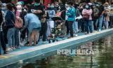REPUBLIKA.CO.ID, JAKARTA -- Pengunjung mengantre untuk pemeriksaan barang bawaan di pintu masuk Dunia Fantasi (Dufan), Taman Impian Jaya Ancol, Jakarta, Rabu (9/12/2020). Libur nasional Pilkada serentak 2020 dimanfaatkan sebagian warga Jakarta dan sekitarnya untuk mengunjungi tempat rekreasi bersama keluarga.