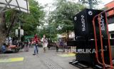 REPUBLIKA.CO.ID, YOGYAKARTA -- Gerbang detektor suhu tubuh terpasang di jalur pedestrian Malioboro, Yogyakarta, Kamis (10/12). Pemasangan detektor suhu otomatis ini untuk memantau kondisi pengunjung saat berwisata di Malioboro. Selain 30 detektor suhu, juga ada 34 tempat cuci tangan tanpa sentuh. Fasilitas ini untuk memberikan kenyamanan di Malioboro sekaligus mengurangi risiko penularan Covid-19.