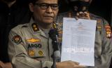 REPUBLIKA.CO.ID, JAKARTA -- Kadiv Humas Mabes Polri Irjen Pol Argo Yuwono menunjukan surat pencekalan kepada enam tersangka saat konferensi pers di Mapolda Metro Jaya, Jakarta, Kamis (10/12).