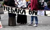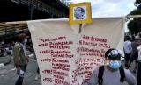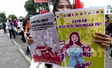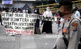 Massa aksi dari Aliansi Rakyat Bergerak menggelar unjuk rasa di Gedung Parkir Abu Bakar Ali, Malioboro, Yogyakarta, Kamis (10/12). Aksi yang bertepatan dengan Hari HAM internasional ini mereka menyerukan bahwa negara gagal menuntaskan kasus pelanggaran HAM. (FOTO : Wihdan Hidayat / Republika)
