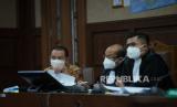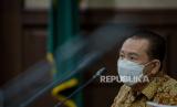 Terpidana kasus cessie Bank Bali Djoko Tjandra mendengarkan kesaksian mantan Kakorwas PPNS Bareskrim Polri Brigjen Pol Prasetijo Utomo, di Pengadilan Tipikor, Jakarta, Kamis (10/12). Dalam sidang tersebut Jaksa Penuntut Umum menghadirkan dua orang saksi yaitu mantan Kepala Divisi Hubungan Internasional Polri Irjen Pol Napoleon Bonaparte dan mantan Kakorwas PPNS Bareskrim Polri Brigjen Pol Prasetijo Utomo dalam perkara dugaan suap kepada jaksa dan perwira tinggi Polri terkait penghapusan status red notice terhadap terdakwa Djoko Tjandra. Republika/Thoudy Badai (FOTO : Republika/Thoudy Badai)