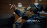 Mantan Kakorwas PPNS Bareskrim Polri Brigjen Pol Prasetijo Utomo memberikan kesaksikan dalam sidang lanjutan terdakwa Djoko Tjandra di di Pengadilan Tipikor, Jakarta, Kamis (10/12). Dalam sidang tersebut Jaksa Penuntut Umum menghadirkan dua orang saksi yaitu mantan Kepala Divisi Hubungan Internasional Polri Irjen Pol Napoleon Bonaparte dan mantan Kakorwas PPNS Bareskrim Polri Brigjen Pol Prasetijo Utomo dalam perkara dugaan suap kepada jaksa dan perwira tinggi Polri terkait penghapusan status red notice terhadap terdakwa Djoko Tjandra. (FOTO : Republika/Thoudy Badai)