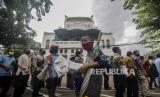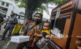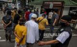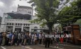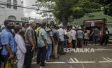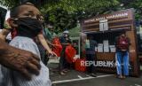 REPUBLIKA.CO.ID, JAKARTA -- Warga mengantre untuk mengambil makanan yang disediakan di Kotak Amal Makanan di Masjid Cut Meutia, Jakarta, Jumat (11/12).