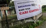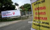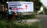 REPUBLIKA.CO.ID, YOGYAKARTA -- Spanduk penolakan ganti rugi lahan di pasang di sudut Dusun Temanggal 1, Kalasan, Sleman, Yogyakarta, Jumat (11/12).