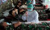 REPUBLIKA.CO.ID, DENPASAR -- Anggota TNI AD melakukan donor darah dan donor plasma konvalesen dalam memperingati Hari Juang TNI AD, di lingkungan Kodam IX Udayana, Denpasar, Bali, Jumat (11/12/2020).