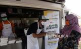 REPUBLIKA.CO.ID, JAKARTA -- Petugas Warteg Mobile Laznas BSM Umat membagikan makanan siap saji untuk masyarakat di kawasan pemukiman Nelayan, Cilincing, Jakarta, Jumat (11/12).