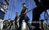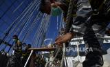 REPUBLIKA.CO.ID, BANDA -- Taruna AAL tingkat III angkatan ke-67 mengikuti lomba peran layar saat kompetisi antar divisi di atas KRI Bima Suci-945 di perairan Banda, Maluku, Jumat (11/12/).