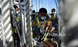 Taruna AAL tingkat III angkatan ke-67 mengikuti lomba peran layar saat kompetisi antar divisi di atas KRI Bima Suci-945 di perairan Banda, Maluku, Jumat (11/12/2020). Kegiatan yang digelar selama pelayaran etape kesembilan menuju Tual dalam menguji materi pemanduan, (FOTO : ANTARA FOTO/ABRIAWAN ABHE)