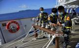 Taruna-Taruni AAL tingkat III angkatan ke-67 mengikuti lomba peran layar saat kompetisi antar divisi di atas KRI Bima Suci-945 di perairan Banda, Maluku, Jumat (11/12/2020). Kegiatan yang digelar selama pelayaran etape kesembilan menuju Tual dalam menguji materi pemanduan, (FOTO : ANTARA FOTO/ABRIAWAN ABHE)