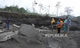 Warga melihat langsung aliran lahar dingin Gunung Semeru di Desa Supiturang, Pronojiwo, Lumajang, Jawa Timur, Sabtu (12/12/2020). Sejumlah warga mengunjungi bekas erupsi di sungai aliran lahar Gunung Semeru meski kawasan itu masih rawan terjadi banjir lahar dingin. ANTARA FOTO/Seno/foc. (FOTO : ANTARA FOTO/SENO)