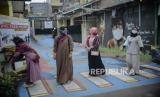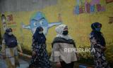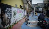 Warga beraktivitas di area kampung tematik dengan tema kesehatan di RT 01 RW 08 Lenteng Agung, Jagakarsa, Jakarta, Ahad (13/12). Kampung tematik tersebut dilengkapi dengan fasilitas cuci tangan dan mural imbauan menjaga kesehatan sebagi upaya menciptakan perilaku hidup bersih dan sehat di masyarakat. (FOTO : Republika/Thoudy Badai)