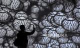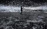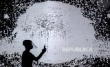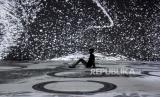 REPUBLIKA.CO.ID, BANDUNG -- Pengunjung menyaksikan pertunjukkan video mapping bertajuk KALA.BORASI: Look Into The Eye of Monster di Ruang Seni Digital Kala Kini Nanti di Paris Van Java Mall, Jalan Sukajadi, Kota Bandung, Ahad (13/12).