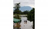 Warga berjalan melintasi banjir yang menggenangi permukiman di Kampung Sewu, Jebres, Solo, Jawa Tengah, Senin (14/12/2020). (FOTO : Antara//Maulana Surya)