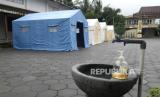 REPUBLIKA.CO.ID, SLEMAN --Sejumlah tenda pengungsi didirikan di halaman Balai Desa Mardikorejo, Sleman, Yogyakarta, Senin (14/12).