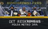 REPUBLIKA.CO.ID, JAKARTA -- Polda Metro Jaya merilis penangkapan dua tersangka kejahatan siber di Mapolda Metro Jaya, Jakarta, Senin (14/12). Pada konferensi pers tersebut polisi menangkap dua orang tersangka berinisal S dan DB terkait kasus siber penyebaran berita bohong dan ancaman pembunuhan terhadap anggota Polri yang viral di media sosial. Republika/Putra M. Akbar