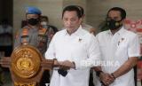 Kabareskrim Komjen Listyo Sigit Prabowo memberikan keterangan kepada wartawan di Mabes Polri, Jakarta, Selasa (15/12). Dalam keterangannya Kabareskrim menegaskan hasil rekonstruksi penembakan terhadap enam laskar di Jalan Tol Jakarta-Cikampek belum final dan jika kemudian ada temuan-temuan baru terkait dengan informasi, saksi maupun bukti-bukti lain maka tidak menutup kemungkinan akan dilanjutkan dengan proses rekonstruksi lanjutan.Prayogi/Republika. (FOTO : Prayogi/Republika)