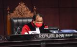 Ketua Mahkamah Konstitusi (MK) Arief Hidayat memimpin sidang Pengujian Materiil Undang-Undang Nomor 11 Tahun 2020 tentang Cipta Kerja terhadap UUD 1945 di ruang sidang pleno Gedung MK, Jakarta, Rabu (16/12/2020). Sidang tersebut beragendakan perbaikan permohonan yang diajukan pemohon yaitu Konfederasi Serikat Pekerja Indonesia (KSPI) yang diwakili oleh Presiden Dewan Eksekutif Nasional KSPI Said Iqbal dan Sekjen Ramidi. (FOTO : Antara/Muhammad Adimaja)